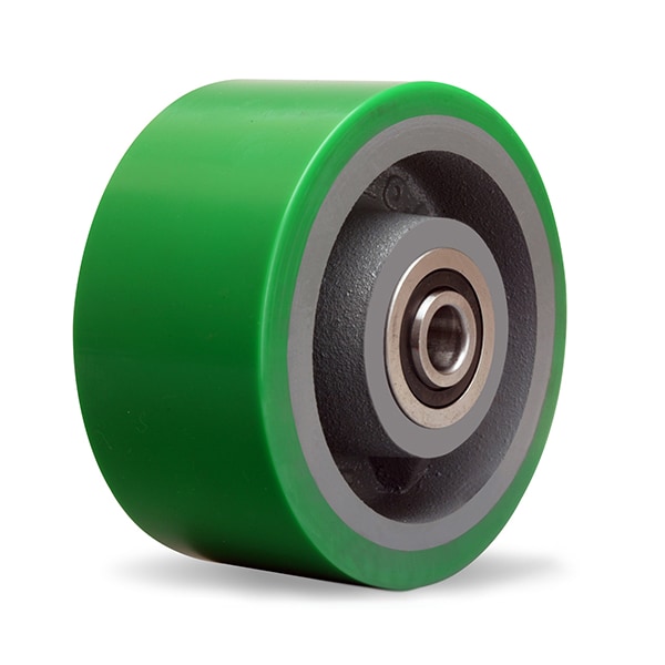 Caster Wheel, 2200 lb Load Rating, 1000 to 2999 lb Load Rating Range, 6 in Wheel Dia., 3 in Wheel Width, Polyurethane Wheel/Tread Material, Firm, 95 Shore A, Precision Ball, Standard Tread Shape, 1 in For Axle Size, No Includes Spanner Bushing, Aluminum Wheel Core Material, Yes Non-Marking, 3 1/2 in Hub Length