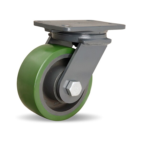 Extended Service Swivel Caster, 6" x 2-1/2" Duralast Polyurethane (95A) on Cast Iron Wheel