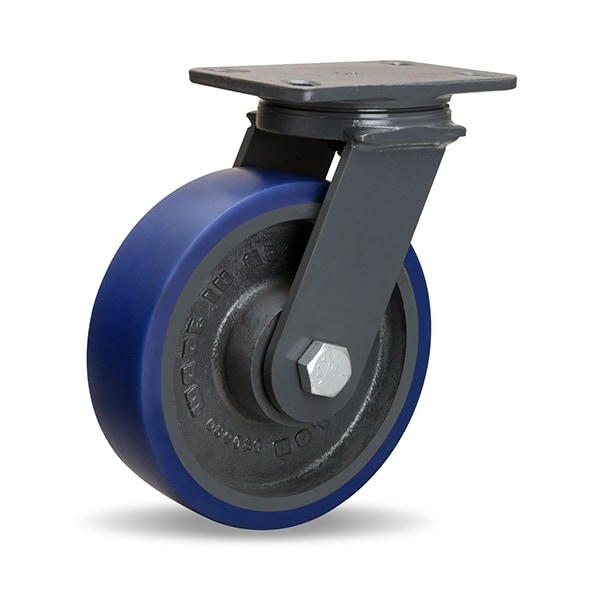Extended Service Swivel Caster, 8" x 3" Ergo-Glide Polyurethane (85A) on Cast Iron Wheel with 3/4" Sealed Precision Ball Bearings