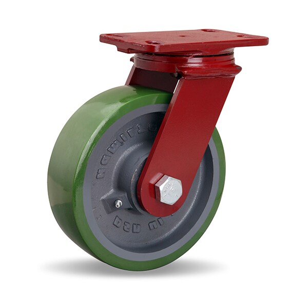ForgeMaster Swivel Caster, 8" x 2-1/2" Duralast(R) Polyurethane (95A) on Cast Iron Wheel with 3/4" Precision Tapered Bearing