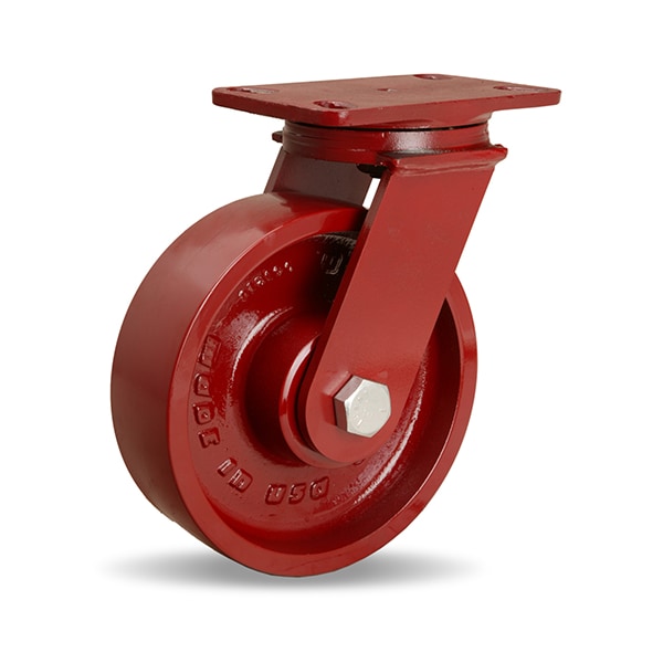 ForgeMaster Swivel Caster, 8" x 2-1/2" Metal Wheel, 1" Straight Roller Bearing