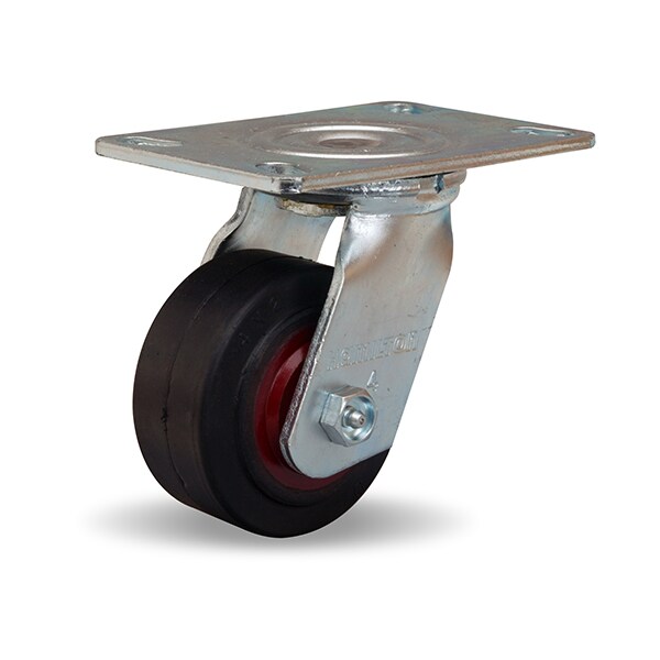 General Service Swivel Caster, 4" x 2" Mold-On Rubber on Cast Iron Wheel, 3/4" Straight Roller Bearing