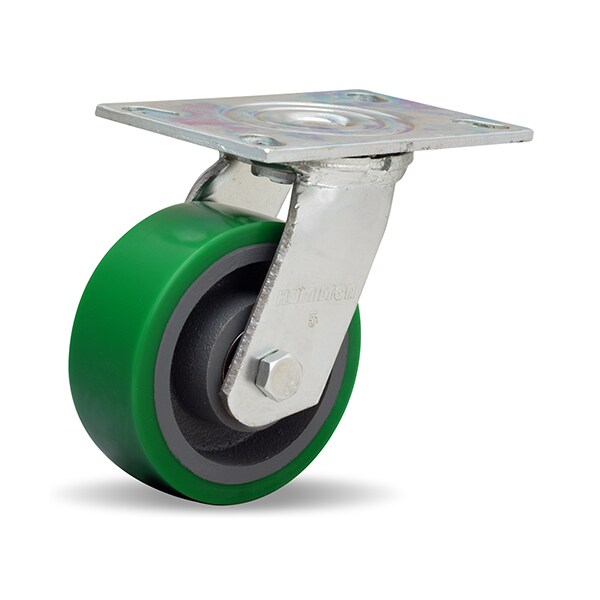General Service Swivel Caster, 5" x 2" Duralast Polyurethane (95A) on Cast Iron Wheels