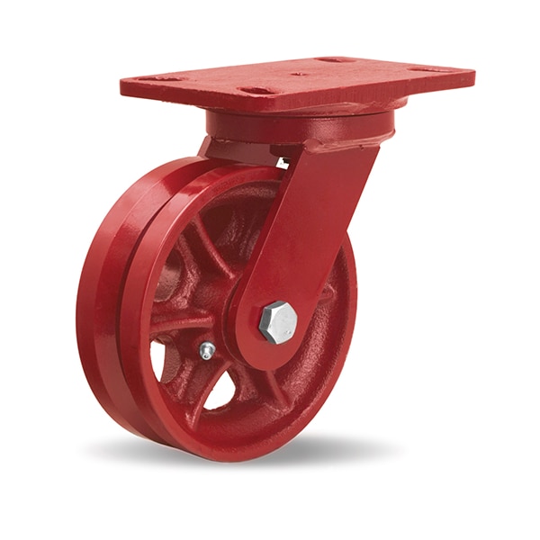 Heavy Service Swivel Caster, 6" x 2" V-Grooved Wheel, 3/4" Straight Roller Bearing