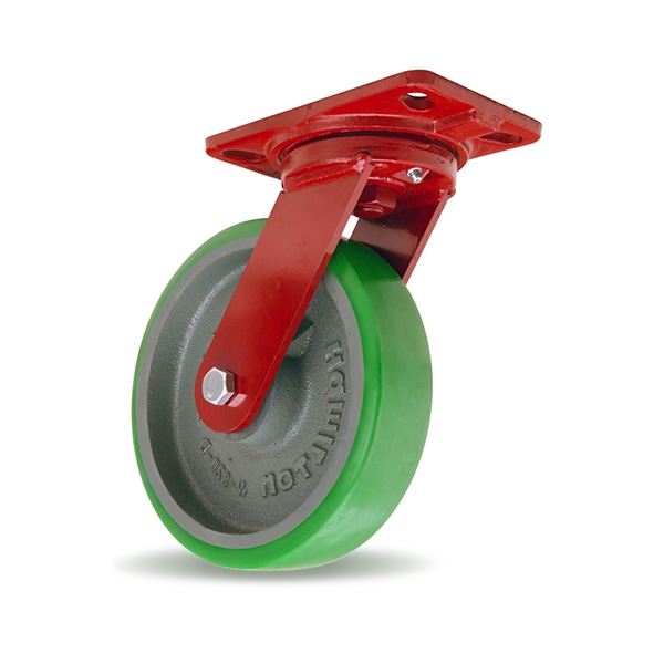 Heavy Service Swivel Caster, 8" x 2" Duralast(R); Polyurethane (95A) on Cast Iron Wheel with 3/4" Precision Tapered Roller Bearings
