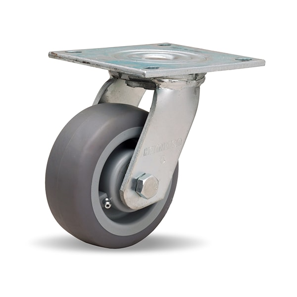 Medium Service Swivel Caster, 5" x 2" Versa-Tech Gray Rubber (65A) on Polyolefin Wheel