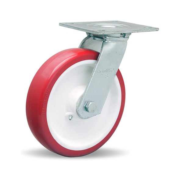 Medium Service Swivel Caster, 8" x 2" Poly-Tech Polyurethane (95A) on Polypropylene Wheel