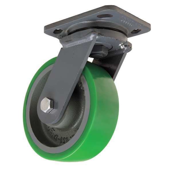 Swivel, Plate Caster, Load Rating 1200 lb, Swivel Lock Type No Lock Included, Wheel Dia. 6 in, Wheel Width 2 in, Wheel/Tread Material Polyurethane, Wheel Core Material Iron, Non-Marking Yes, Number of Wheels 1, Caster Brake Type No Brake, Tread Shape Standard