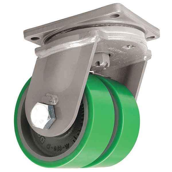 Swivel, Plate Caster, Load Rating 5000 lb, Swivel Lock Type 4-Position Swivel Lock, Wheel Dia. 8 in, Wheel Width 3 in, Wheel/Tread Material Polyurethane, Wheel Core Material Iron, Non-Marking Yes, Number of Wheels 2, Caster Brake Type Face Brake, Tread Shape Standard