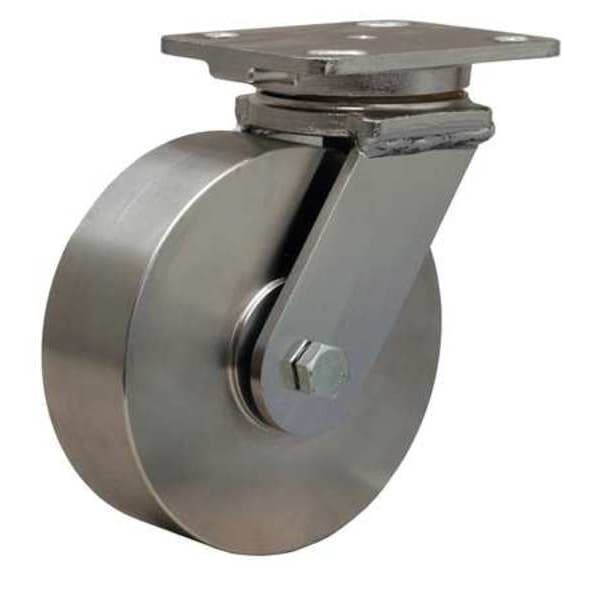 Plate Caster, Swivel, SS, 6 in., 1200 lb., Slvr