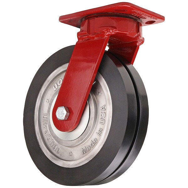 Kingpinless Swivel, Plate Caster, Load Rating 2,800 lb, Swivel Lock Type No Lock Included, Wheel Dia. 8 in, Wheel Width 1 in, Wheel/Tread Material Polyurethane, Wheel Core Material Aluminum, Non-Marking No, Number of Wheels 2, Caster Brake Type No Brake, Tread Shape Standard
