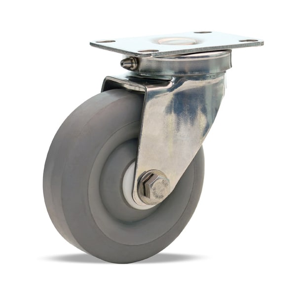 Stainless Steel Swivel Caster, 4" x 1 3/8" Versa-Tech Gray Rubber (65A) on Polyolefin Wheel
