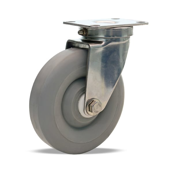 Stainless Steel Swivel Caster, 5" x 1 3/8" Versa-Tech Gray Rubber (65A) on Polyolefin Wheel