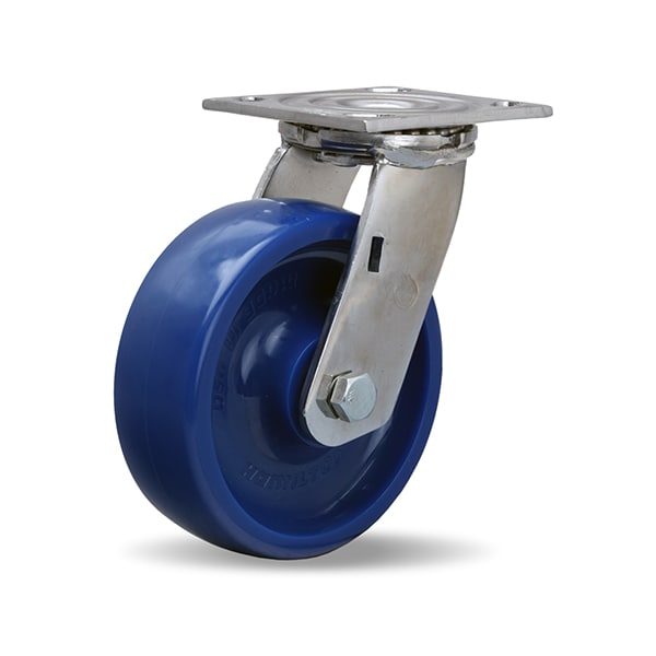 Stainless Steel Swivel Caster, 6" x 2" Unilast Solid Polyurethane (75D) Wheel, 3/4" Delrin Bearing