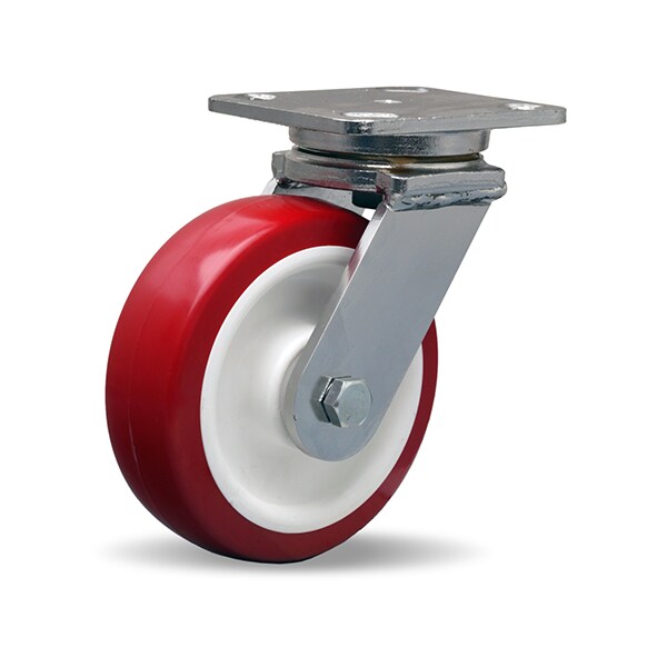 Stainless Steel Workhorse Swivel Caster, 6" x 2" Poly-Tech® Polyurethane (95A) on Polypropylene Wheel with 3/4" Delrin® Bearing