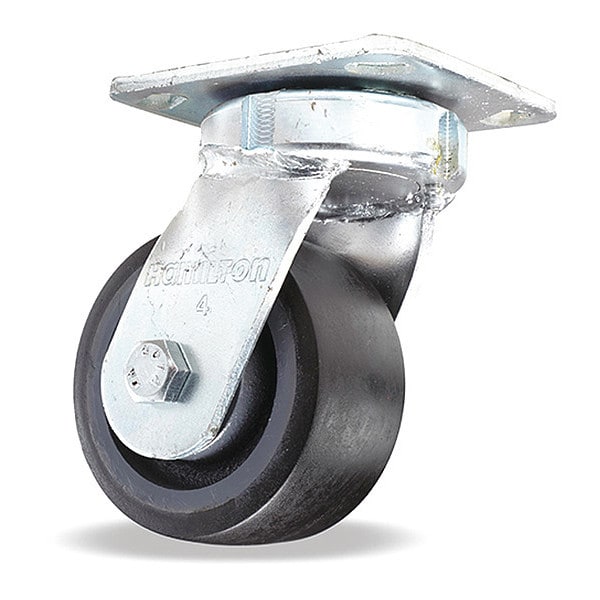 Standard Duty Kingpinless Caster, 4" x 2" Duralast(R); XC Polyurethane (70D) on Cast Iron Wheel with 1/2" Sealed Precision Ball Bearings