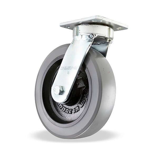 Standard Duty Kingpinless Caster, 8" x 2" Dura-Glide Polyurethane (95A) on Cast Iron Wheel with 1/2" Sealed Precision Ball Bearings