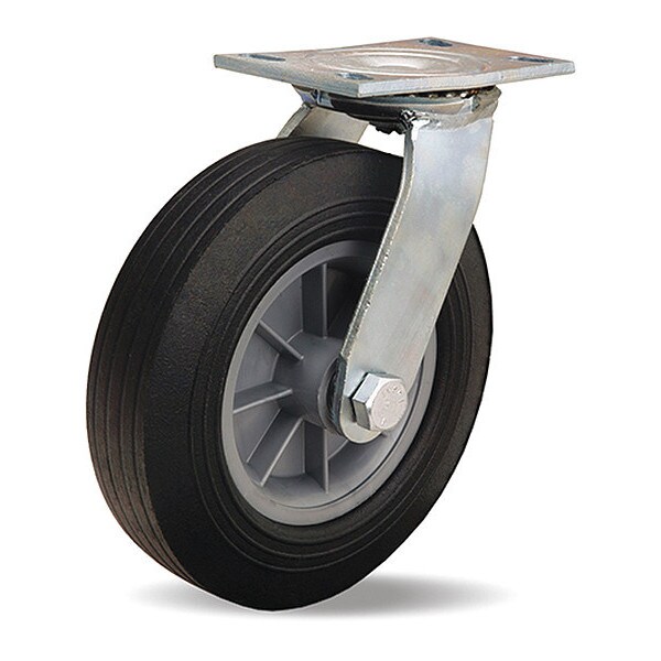 Swivel, Plate Caster, Wheel Dia. 10 in, Wheel Width 2 3/4 in, Wheel/Tread Material Rubber, Non-Marking No, Number of Wheels 1, Caster Brake Type No Brake Included