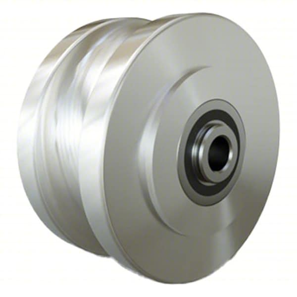 Track Wheel, 4 in Wheel Dia., 2 in Wheel Width, Stainless Steel Wheel/Tread Material, Precision Ball Wheel Bearing Type, U-Groove Tread Shape, For Axle Size 1/2 in, 1 1/16 in Groove Width, Yes Includes Spanner Bushing, Stainless Steel Wheel Core Material, Yes Non-Marking, 2 1/4 in Hub Length