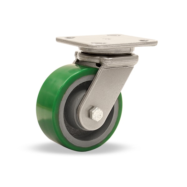 Workhorse Swivel Caster, 5" x 2" Duralast Polyurethane (95A) on Cast Iron Wheel with 3/4" Precision Tapered Roller Bearings