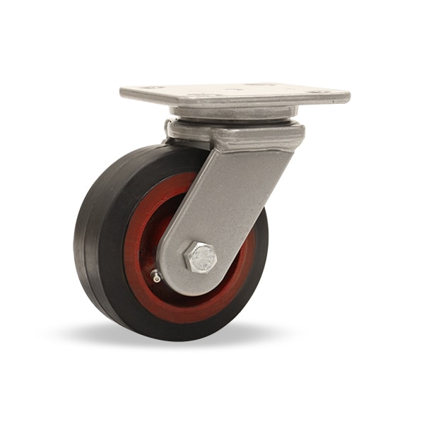 Workhorse Swivel Caster, 5" x 2" Moldon Rubber Wheel (70A), 3/4" Straight Roller Bearing