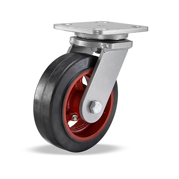 Workhorse Swivel Caster, 6" x 2" Moldon Rubber Wheel (70A), 3/4" Straight Roller Bearing