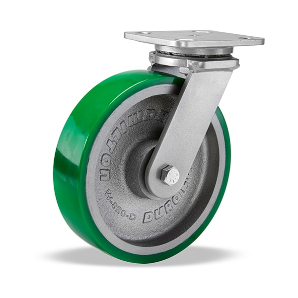 Workhorse Swivel Caster, 8" x 2" Duralast Polyurethane Wheels, 1/2" Precision Tapered Bearings.
