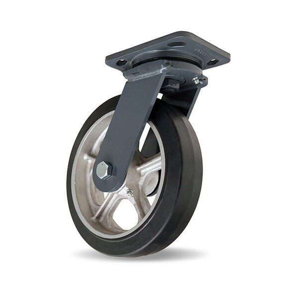 Workhorse Swivel Caster, 8" x 2" Moldon Rubber Wheel (70A), 1/2" Precision Tapered Bearings
