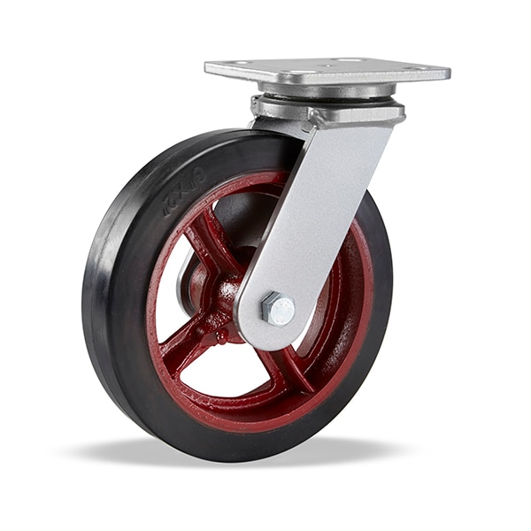 Workhorse Swivel Caster, 8" x 2" Moldon Rubber Wheel (70A), 3/4" Straight Roller Bearing