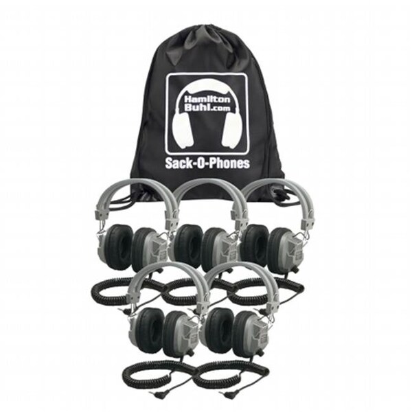 Sack O Phones 5 Sc7v Deluxe Headphones With Volume Control The Hamilton Buhl SOP-SC-7V Sack-O-Phones- 5 Pack of Hamilton SC-7V Deluxe Headphones with Leatherette Ear Cushions and Volume Control. Sack-O-Phones packaging is a unique bag that doubles as a knap sack and holds 5 deluxe or 10 personal headphones. It's a great way to store headphones easily and economically, no need for costly plastic cases for storage.
