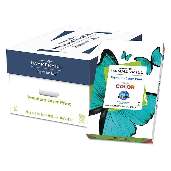 Laser Paper, Sheet Size 8 1/2 in x 14 in, Paper Size Name Legal, Paper Weight 24 lb, Brightness 98, Color White, Finish Matte, 3 Hole Punch No, Total Number of Sheets 500, Number of Reams per Case 1, For Use With Copiers, Laser Printers, Recycled Content 0 Percent, Package Quantity 500