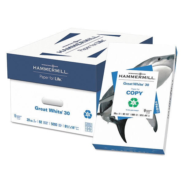 Multipurpose Paper, Sheet Size 8 1/2 in x 14 in, Paper Size Name Legal, Paper Weight 20 lb, Brightness 92, Color White, Finish Matte, 3 Hole Punch No, Total Number of Sheets 500, Number of Reams per Case 1, For Use With Copiers, Inkjet Printers, Laser Printers, Recycled Content 30 Percent, Package Quantity 500