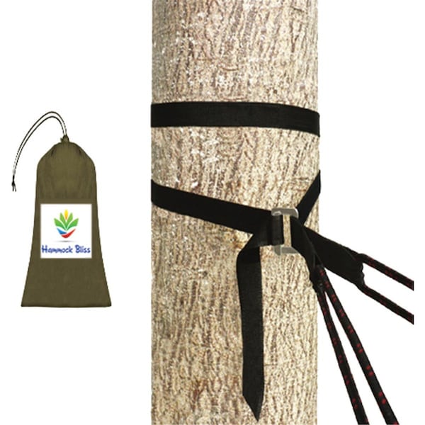 Deluxe Cinching Tree Straps make it a breeze to set up and adjust your hammock anywhere. Hammock Bliss's military spec metal cinching buckle allows you to easily tighten or loosen your straps on the go. Deluxe tree straps are ideal for quick set up, speedy height adjustments and fast take down of your hammock. Strength tested up to 350 lbs. Includes two straps. Specifications Dimensions: 100in x 1.5in Weight: 7.5 oz