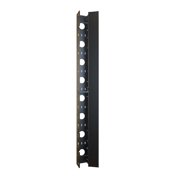 44U Rack Basics Vertical cable manager with hinged door and swing-away stabilizer.