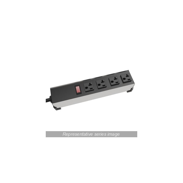 20A H.D. 4 Outlet Strip w/ switch, 6 ft. cord Straight Plug - Outlets Front - Black