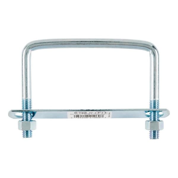 Hamption Square bend U-bold Wire dia.: 0.327 Thread dia.: 3/8in Thread length: 1-3/8in Between legs: 4in Inside length: 3in Bright zinc plated steel Includes nuts & cross plate National cross referenc. . Features -Square Bend U-Bolt Zince Specifications - Dimension: 5.5in H x 5.5in W x 7in L - Weight: 4 lbs