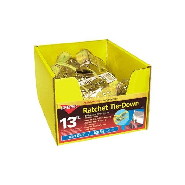 Keeper, 13' Endless Ratchet Tie Down, 400 LB Working Load Limit, 1,200 LB Break Strength, Ideal For Auto SUV Roof Racks, Free End Is Fed Back Through The Ratchet Then Tightened To Create An Endless Looped Tie Down