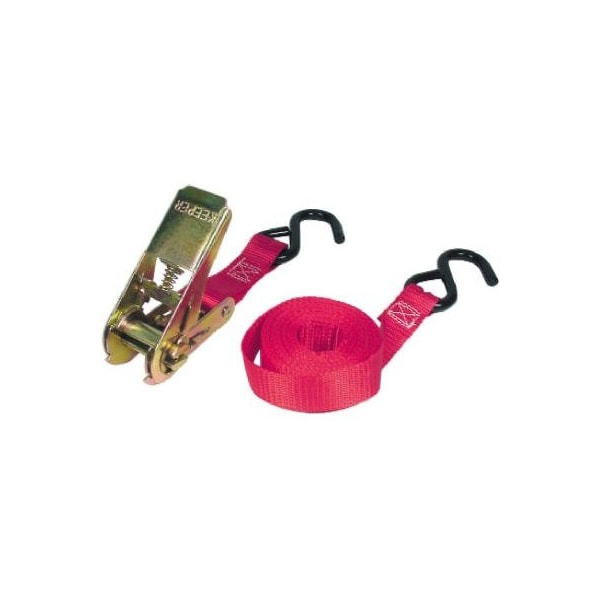 Keeper, 2 Pack, 10', Ratchet Tie Down, 300 LB Working Load Limit, 900 LB Break Strength, Compact, NonMarring, Vinyl Coated S Hooks, Ratchets Provide Maximum Tensioning With Minimum Force, Hi Test Webbing Exceeds The Needs Of Demanding Applications, Safety First, Spring Loaded Release Mechanism Prevents Ratchet From Opening Accidentally
