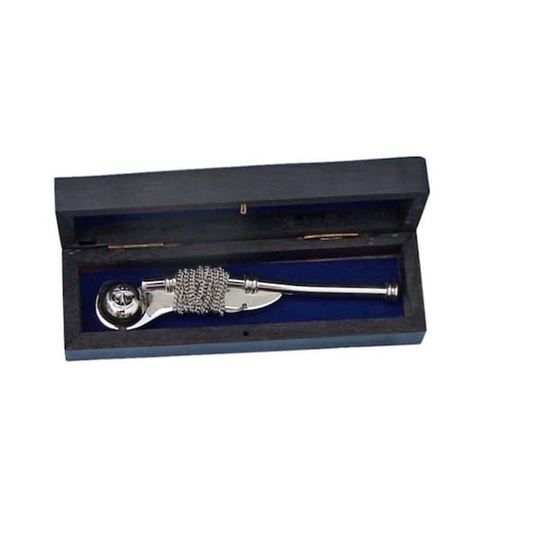 Chrome Boatswain Bosun Whistle 5 in. With Black Rosewood Box