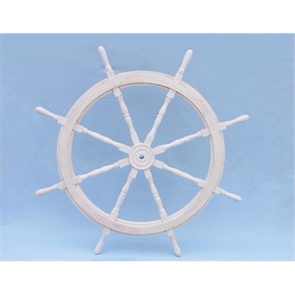 Classic Wooden Whitewash Ship Steering Wheel 48 in. Decorative Accent (Discontinued)