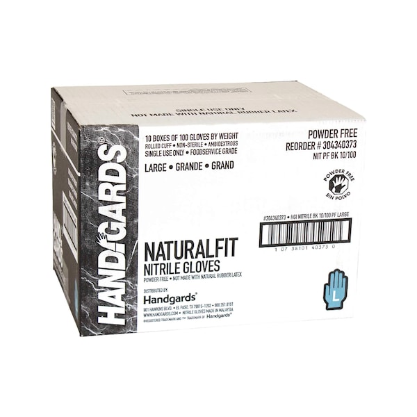 NaturalFit, Disposable Gloves, Nitrile, Powder-Free, L, 1000 PK, Black