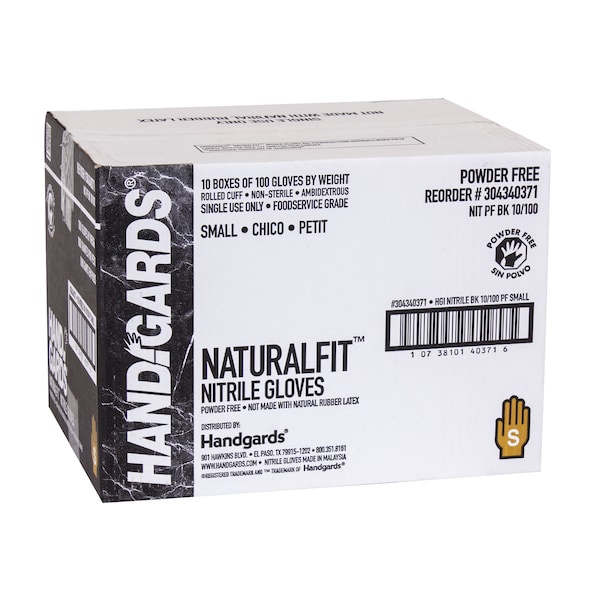 NaturalFit, Disposable Gloves, Nitrile, Powder-Free, S, 1000 PK, Black
