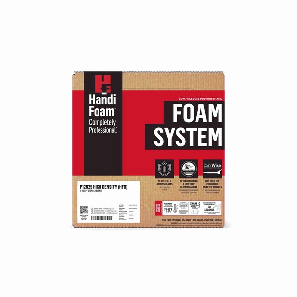 Insulating Spray Foam Insulation Kit, Insulation Value R-6.5, Application Foam Blister, Cell Type Closed Cell, Color Cream, Container Size 26 lb, Container Type Cylinder, Coverage 60 bd ft, Expansion Ratio 3:1, Foam Density 3 lb/cu ft, Full Cure Time 1 hr, Includes (3) ColorWise Fan Nozzles, (5) ColorWise Cone Nozzles, 9 1/2 ft Gun Hose Assembly, Maximum Performance Temperature 85 Degrees F, Minimum Performance Temperature 70 Degrees F, Working Time 1 min, Standards ASTM E84