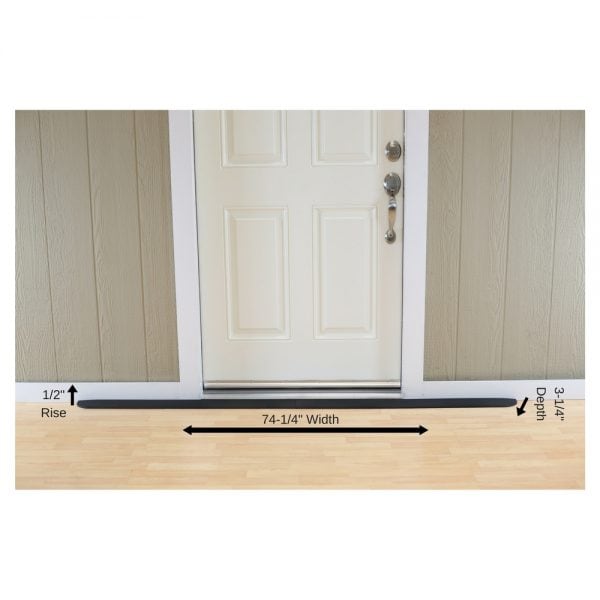 ADA Compliant Rubber Threshold Ramp: 1/2" Rise x 74-1/4" Wide x 3-1/4" Depth - 2 pc assembly