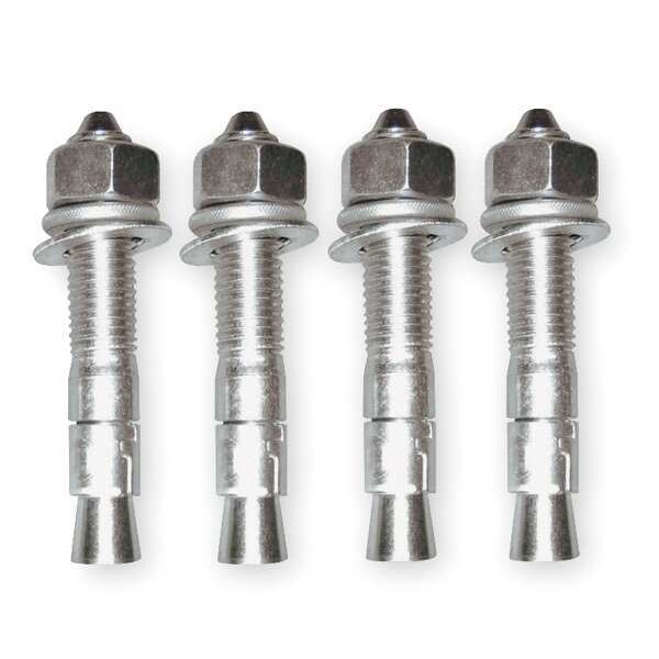 Wedge Anchors, Color Silver, Steel, Overall Length 4 1/4 in, Outside Dia. 3/4 in, Package Quantity 4