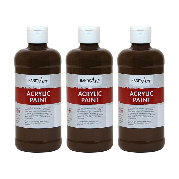 Acrylic Paint 16 oz, Burnt Umber, 3PK