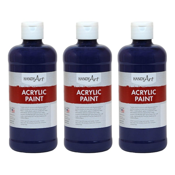 These acrylic paints combine high quality with low cost and are the preferred choice for paint parties! You can explore most any idea or project with this economical spectrum of colors. Use on most surfaces: paper, fabric, wood, plastic, glass, cardboard, metal and canvas. Rich and durable colors dry to a permanent, water resistant and flexible semi-gloss finish. Clean up with soap and water. Certified AP Non-Toxic and Gluten-Free. Each bottle includes 16 oz. of paint. Sold as a pack of 3 bottles.
