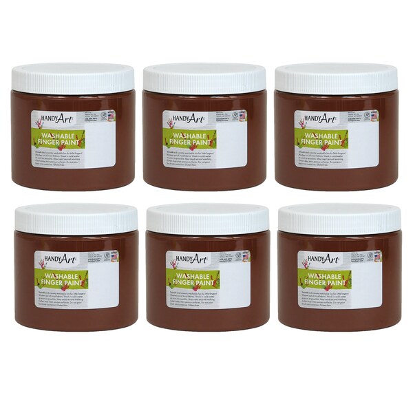 Handy Art Washable Finger Paint offers vibrant, fast drying color with a smooth and creamy texture. Never have little hands had so much fun and been so clean afterwards! Handy Art Washable Finger Paints are available in a variety of sizes and colors. Handy Art Washable Finger Paints are designed to wash out of most clothing with soap and cold water. Handy Art Washable Finger Paints are certified AP non-toxic. Each bottle is 16 oz. Sold as a pack of 6 bottles.