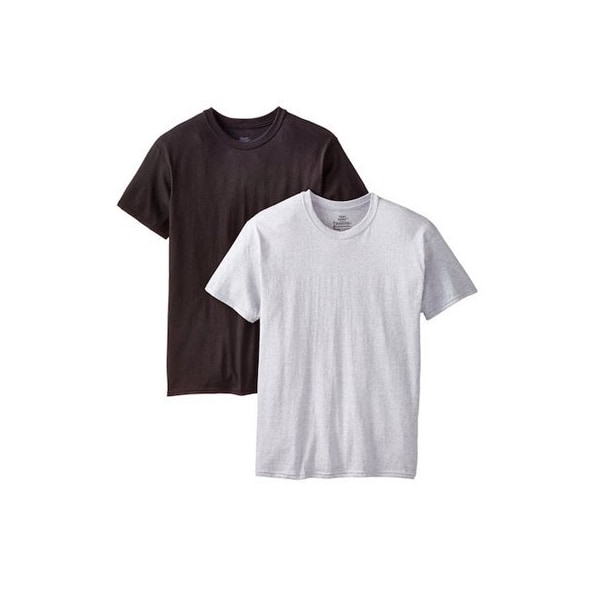 2 Pack, Large, Black Gray, Men's Crew TeeShirt, 100 Cotton Knit, PreShrunk For Lasting Fit, TagLess For A Comfortable, NoItch Neckline, 2 Ply, Rib Knit Neckband Resists Raveling, Roomy Arm Holes Allow Free Movement, Generous Length Stays Neatly Tucked, Lay Flat Collar Stays That Way