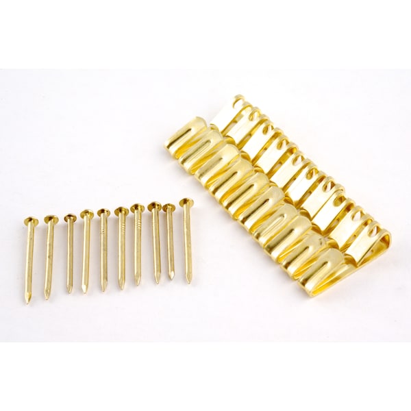 Hangman Products Deluxe Wire Hanger is a quick, efficient, low cost way to hang home wall decor using picture hanging wire. This is a strong, heavy duty brass plated picture frame hanger that can hold up to 20 pounds of weight. In most situations the only required installation tool is a hammer. Each Pack contains 10 conventional hangers and 10 and 10 Nails